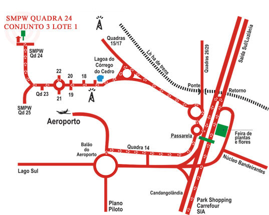 Pegue a Saída Sul sentido aeroporto. Logo após passar o balão do aeroporto (como quem segue para o próprio aeroporto), pegar a primeira direita. Seguirão dois balões, logo após o segundo, haverá uma bifurcação. Nela, pegue a esquerda (quadras 15 a 25). Siga até a próxima bifurcação e entre novamente à esquerda (quadras 18 a 25). Siga até o fim da reta e pegue a direita (quadra 24). Logo depois de uma descida e subida, mais uma bifurcação. A entrada à esquerda é a entrada do Spa Zen Arte Vivenda.